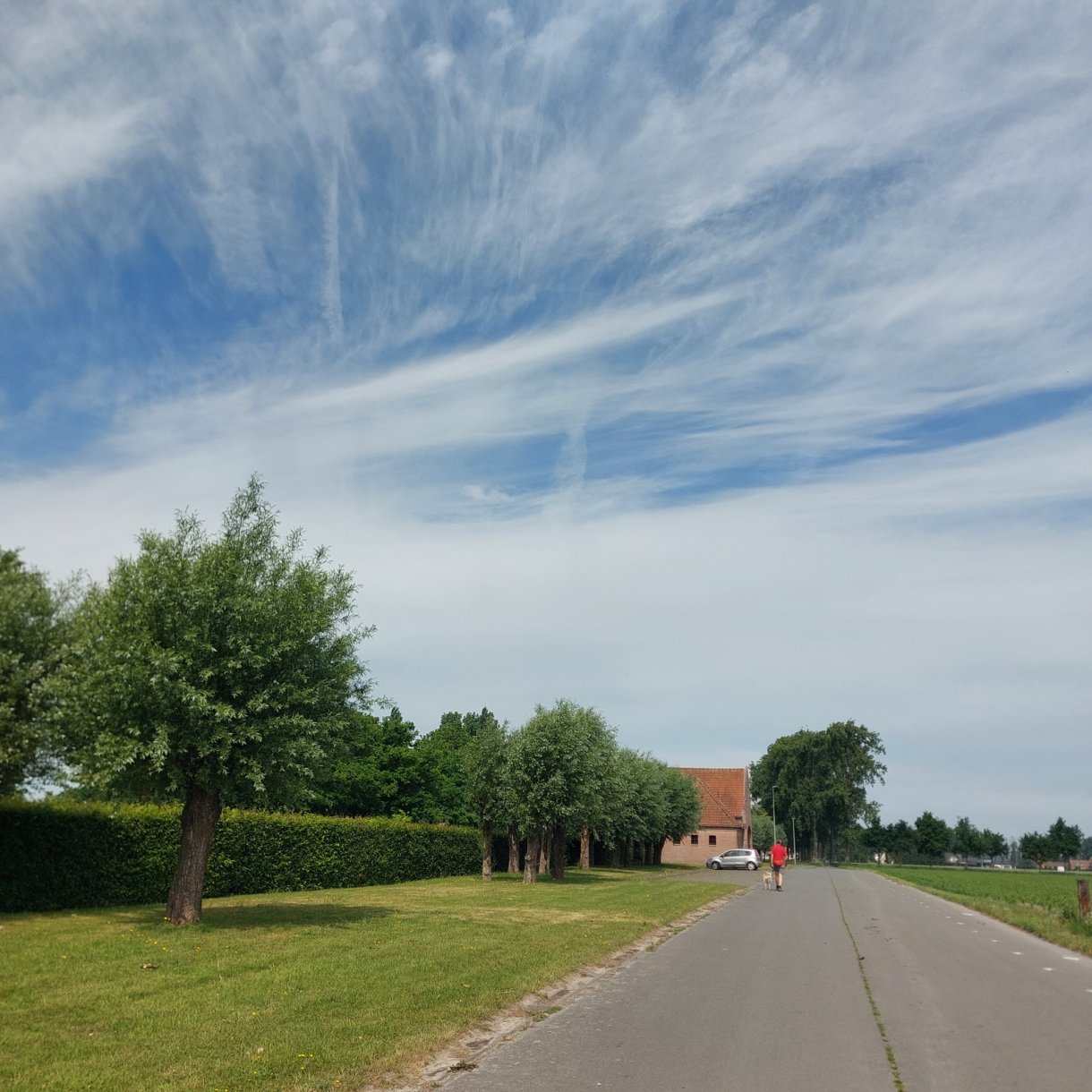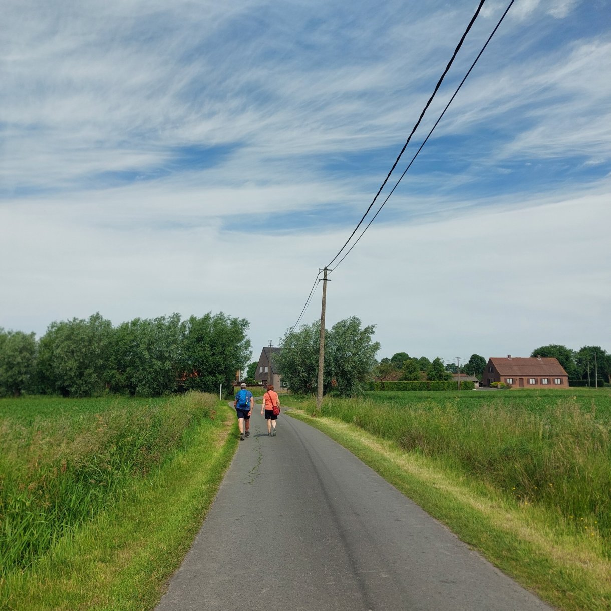 Het weer was warm en zwoel, met een stralende zon die ons in het begin begroette. De route leidde ons door het prachtige landschap van Beernem, langs het sportpark Drogenbrood, de Fortstraat en over de wandel- en fietsbrug. De eerste kilometers waren een genot, met de frisse lucht en het gezelschap van elkaar.